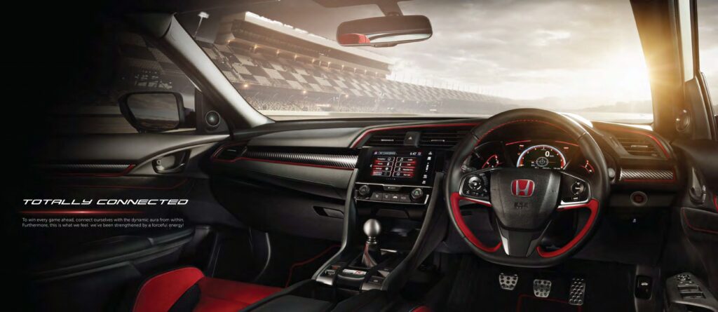 Kokpit yang ditopang kuat dengan warna merah dan hitam dapat memberikan sensasi balap pada saat Anda berkendara.